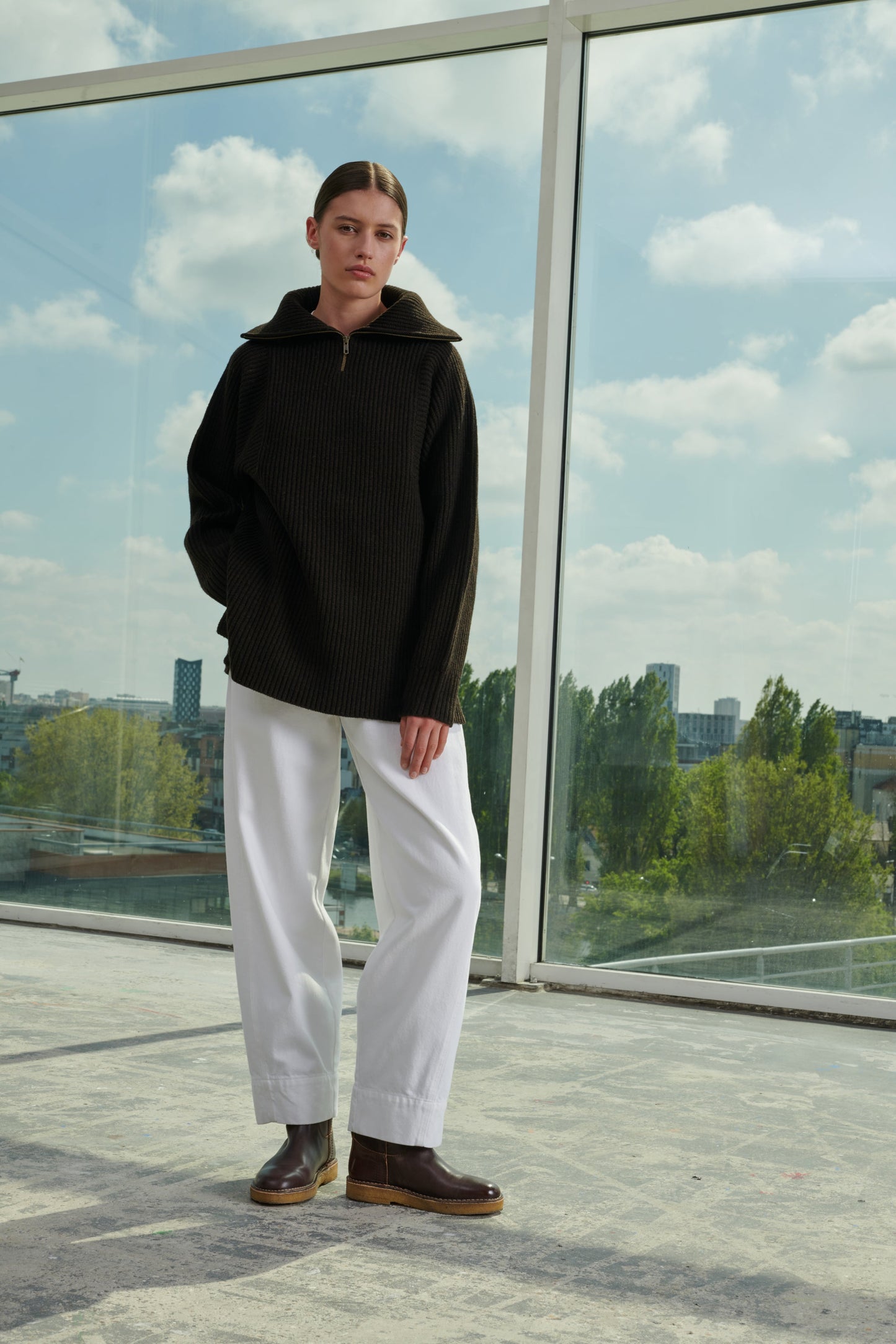 - Straight, wide slip-on boots