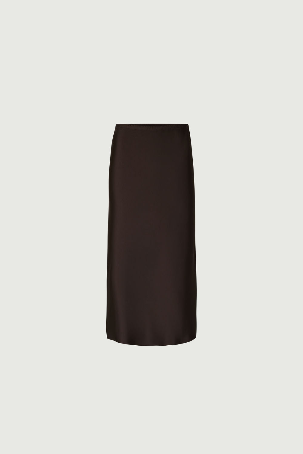 FEVER is a skirt with an elasticated waistband that allows it to be worn higher or lower, adapting to all body shapes. Its minimalist cut highlights the liquid drape of its fluid and shiny fabric. A bias cut gives it a slightly flared shape. A wardrobe essential from Soeur, reimagined each season.
