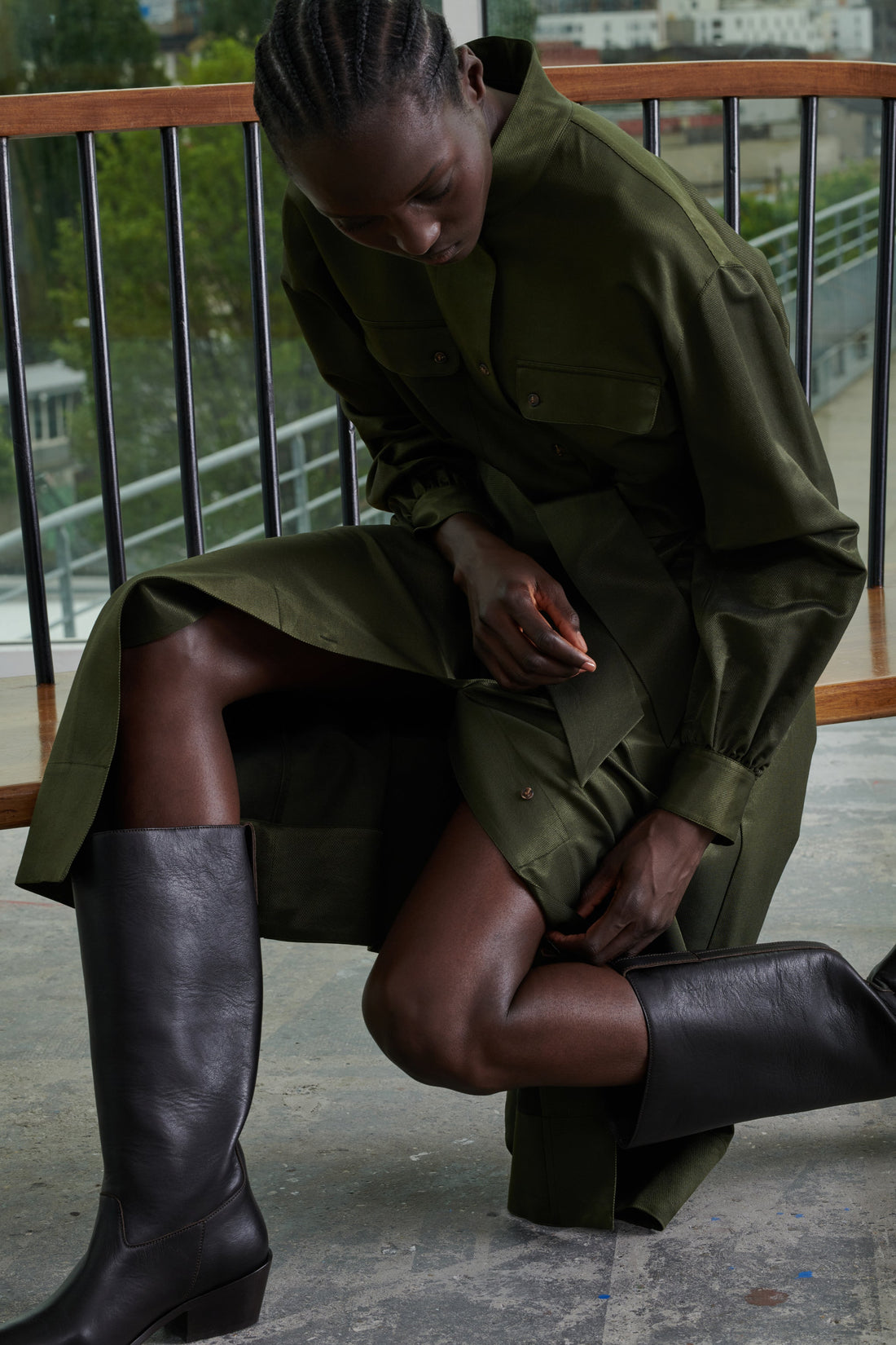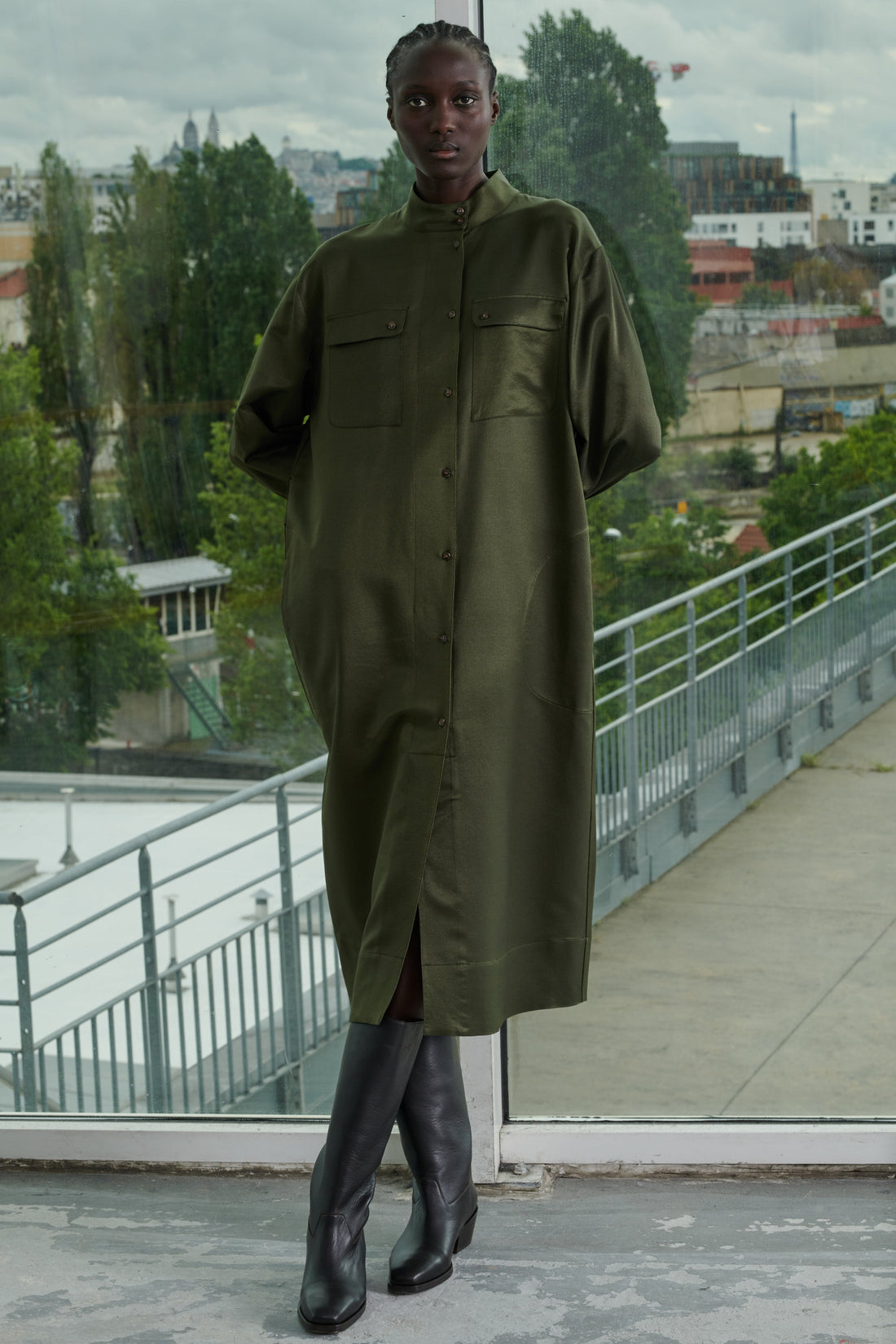 La mannequin is 1m80 (5'11) tall and wears a size 38.