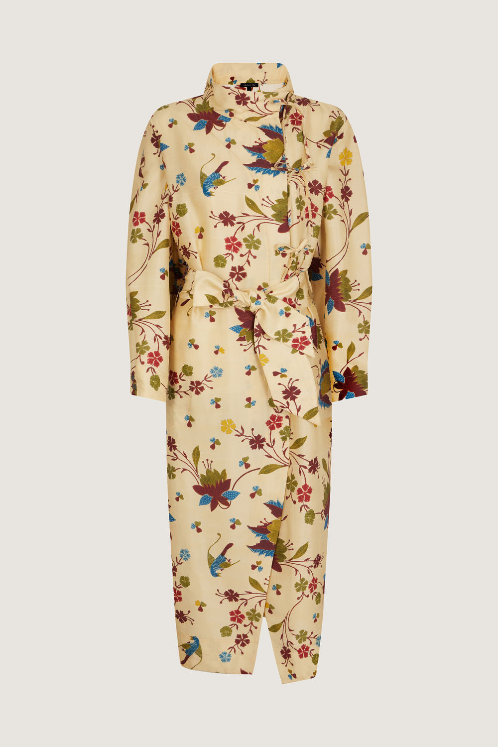Dress with ties in printed silk doupion multico off-white
