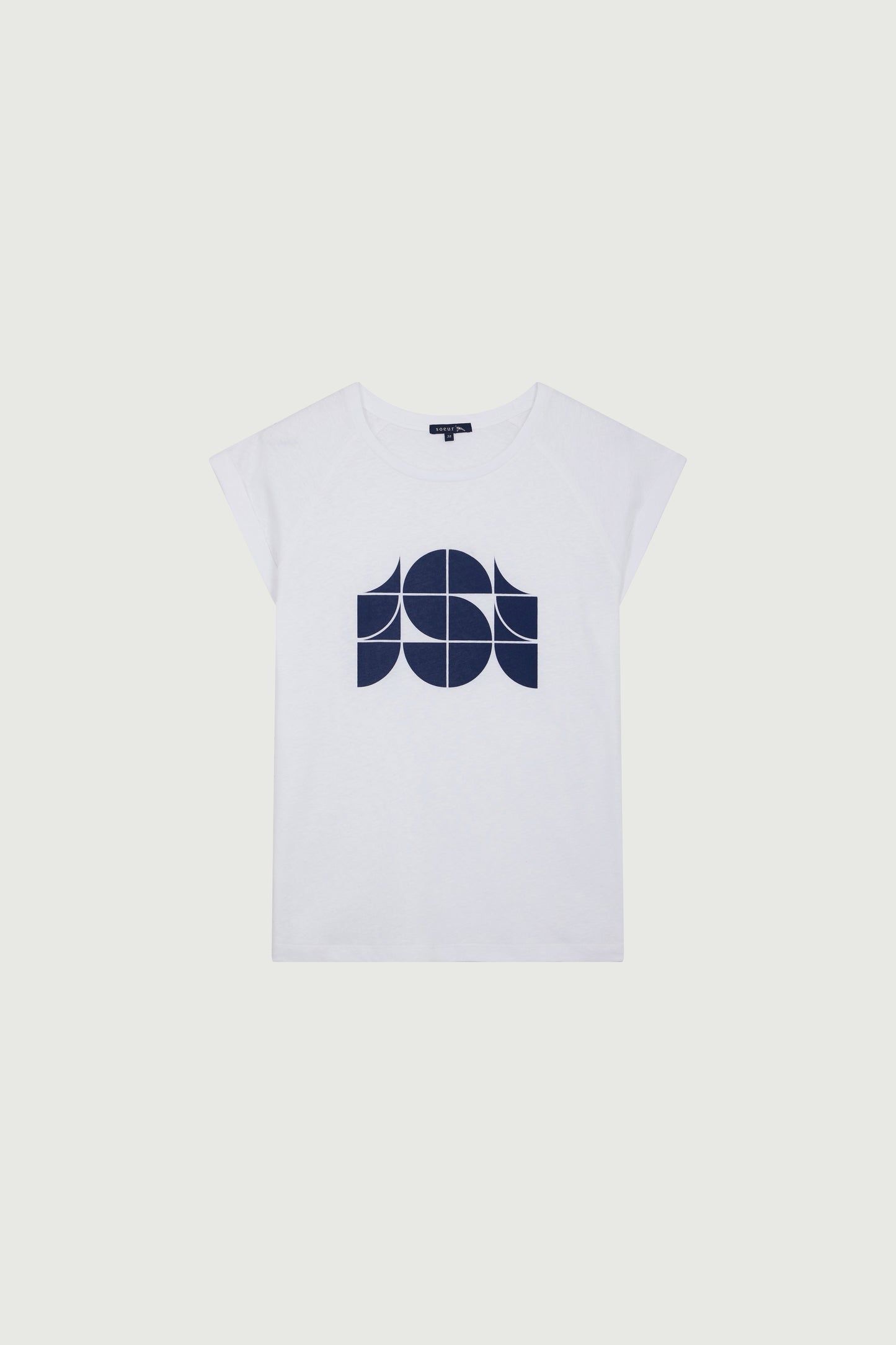 valentina tee-shirt Screen-printed T-shirt in white organic cotton and linen jersey