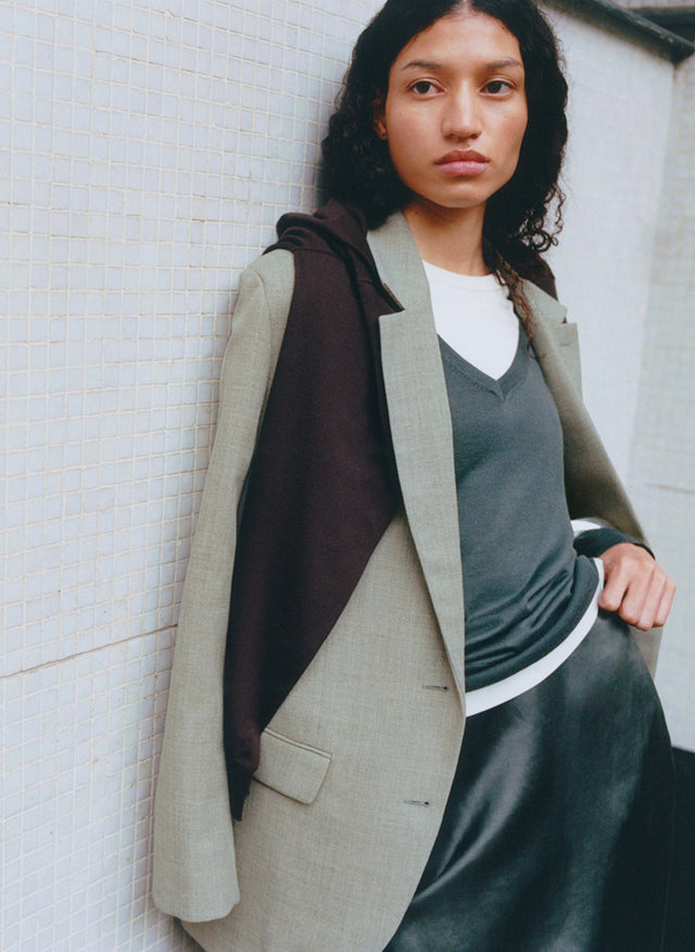 IDA is a minimalist strapless top crafted from fluid slubbed wool-viscose. Its clean silhouette reveals a natural elegance, enhanced by the discreet sheen and subtle irregularities of the fabric. It pairs beautifully with a tailored jacket, a silk scarf, or a statement piece of jewelry to elevate the look.